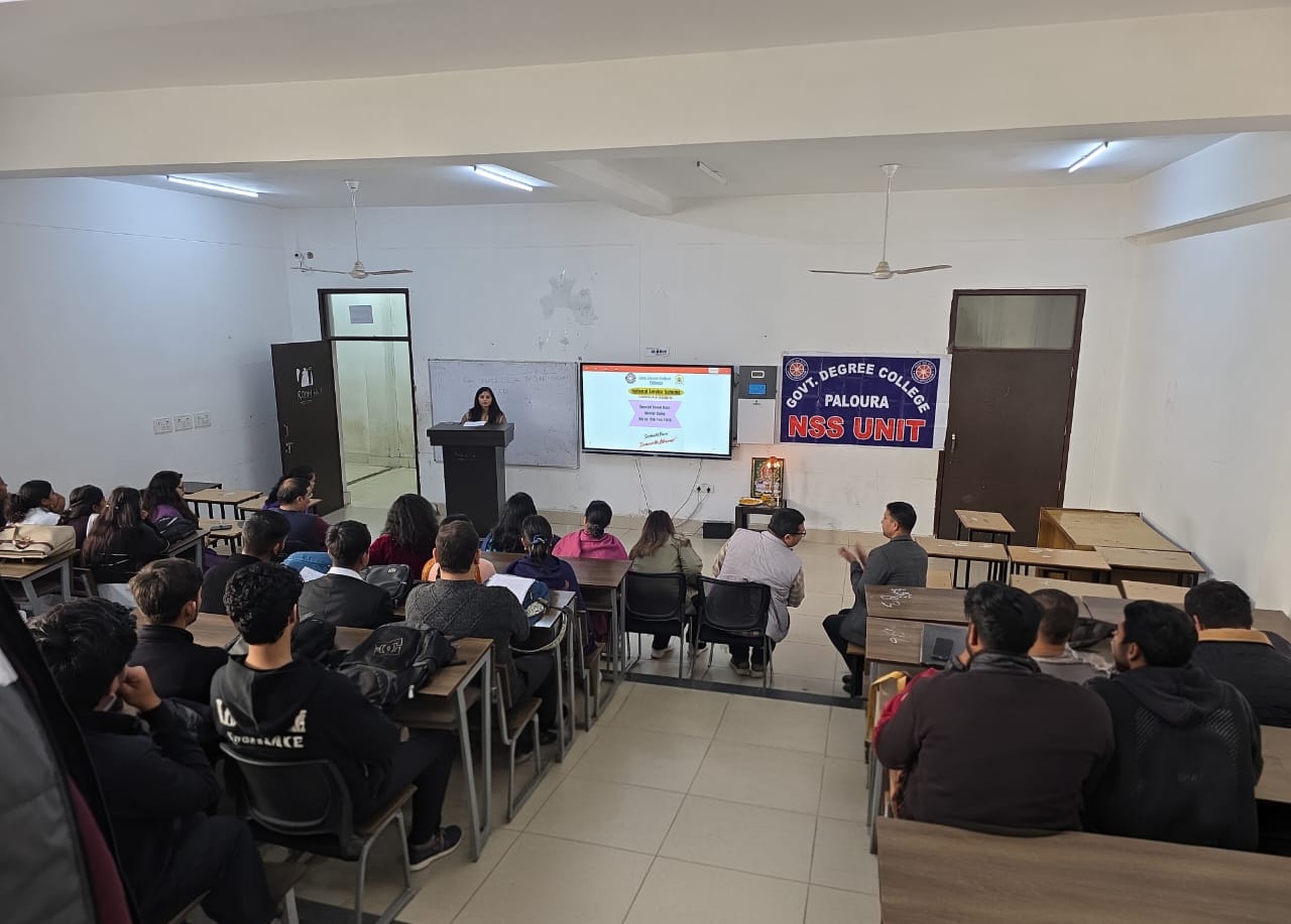 A seminar on the theme “Role of J&K Youth in Achieving Viksit Bharat @2047” was successfully organized by Government Degree College Paloura (Mishriwala). The event witnessed enthusiastic participation from various students who shared their views, ideas, and vision for a developed India by the year 2047. The seminar aimed to highlight the significant role of the youth of Jammu & Kashmir in nation-building and in shaping India as a progressive and developed country by 2047. Participants presented thought-provoking speeches focusing on innovation, education, entrepreneurship, sustainable development, and civic responsibility. Among the participants, Ms. Komal of Sem-V was declared winner of the seminar for her outstanding presentation and impactful insights. Dr. Kulvinder Kour, Principal Govt. Degree College Paloura (Mishriwala) presided over the proceedings, emphasizing the college’s commitment to nurturing leadership and civic responsibility among students. The seminar was convened by Prof. Amit Bhalla, Dr. Roshi Sharma, and Dr. Rajat Gupta, whose guidance and support were instrumental in the smooth conduct of the event. The seminar concluded with words of encouragement for the students to contribute actively to the nation’s growth and inclusive development.